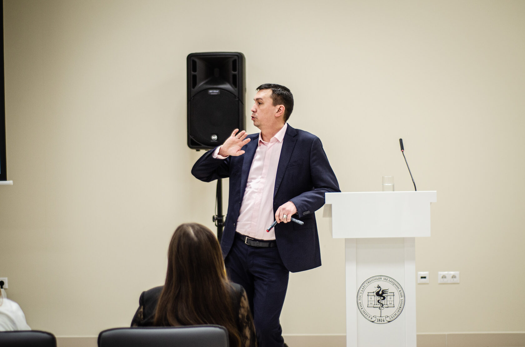 - Зрительный контакт: скользите взглядом по залу, задерживаясь на отдельных людях.